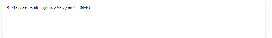Розділ Облікові дані дозволяє переглянути перелік даних про платника, основними розділами є: - Основні відомості; - Адреса інформаційного обміну; - Відповідальний працівник (посада, ПІП); - Кількість філій, що на обліку як СПФМ.